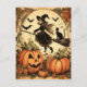Halloween Witch with Broom and Cat Postcard
