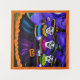 This colourful and festive painting of three witches with skull-like faces and colourful clothing is perfect for any Halloween party or decoration. The dark purple sky with a full moon and bats flying in the background adds to the spooky atmosphere. Get ready for a spook-tacular Halloween with this painting that is sure to add a touch of magic to your Halloween celebration.