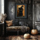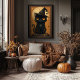 This fun Halloween black cat art poster is just the thing to bring a witchy touch of Halloween into your home, Made with a vintage vibe, this black cat in a witch's hat art print will fit in nicely with your spooky home decor and can be made in a variety of sizes. Just can't wait to have it on your walls? This poster is also available as a downloadable design to instantly print or take to your favourite local print provider. You can also format this design to fit any space in your house