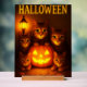 This Halloween artwork portrays the magical essence of autumn nights with glowing pumpkins and the watchful eyes of adorable orange cats. The composition radiates warmth from the lantern and jack-o’-lantern, casting a cozy golden light that contrasts with the playful mystery of the cats. Ideal as seasonal wall décor for living rooms, entryways, or festive gatherings, this poster combines whimsical feline charm with the timeless spirit of Halloween. A perfect gift for cat lovers, Halloween fans, and those who appreciate enchanting seasonal art.