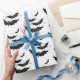 Halloween wrapping paper is shown in a black and white bats print. Customize this paper or just buy as is.