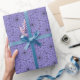 Wrapping paper shown in a purple colour with a Halloween spider web print.