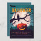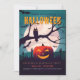 Spooky vintage style zombie Halloween graveyard scene invitation with a full moon, bats, a wise owl, a ghoulish big orange jack o'lantern pumpkin, and creepy zombie hands reaching out of the ground. Invite your friends for a cocktails and costume party this Halloween. Easily customize all the details to have friends over for a frightfully good time.