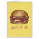 La carte de voeux présente une illustration originale d'un sandwich au jambon et au fromage, avec HAM IT UP dans une police amusante. Ne vois-tu pas ce que tu cherches ? Vous avez besoin d'aide pour la personnalisation ? Cliquez sur "Contacter ce designer" pour avoir quelque chose créé juste pour vous !