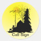 We've given a more sophisticated look to the outdoor Ham Operator with this silhouette design of a Amateur Radio Operator outdoors with his rig, a antenna, a tent and some trees. On this button we've put the bright yellow sun behind, creating the dark silhouette look. You can also customize this with a call sign or anything else you' d like. NOTE: If you want to change the shape that we're offering this on to another shape, you'll have to adjust the font sizes (and maybe the style?) To do that, just go to "Customize" and then click the line of text (right side) and use the buttons. "F" - fonts Black box - colours + and - for sizing. You can go into the "Design" mode to have your mouse move things also. Got questions? Just write me.