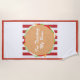 This red and white beach towel features a hamburger with all the fixings on a sesame seed bun. It says "I'm toasting my buns" but you it can be personalized. The hamburger is set against a red and white striped background. A Cheerful and fun design.
