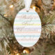 HAMbWG - Egg shaped Ornament - Baby's First Christmas - Pastel Stripes - There is a beautiful multi-coloured stripe on the front of this ornament, with the words "Merry Christmas" and a text box for the year and a name. All pictures and words can be replaced. You can download your favourite Christmas photo to the back and personalize with your name!