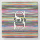 HAMbyWhiteGlove aka HAMbWG Designed coaster, with a beautiful, colourful multi-colour irregular-line design as a backdrop for your monogram!