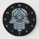 Hamesh Hamsa Wall Clock. The hamsa hand (Arabic) or hamesh hand (Hebrew) is an old and still popular amulet for magical protection from the envious or evil eye. The words hamsa and hamesh mean "five" and refer to the digits on the hand. An alternative Islamic name for this charm is the Hand of Fatima, in reference to the daughter of Mohammed. An alternative Jewish name for it is the Hand of Miriam, in reference to the sister of Moses and Aaron.