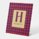 Handsome design celebrating your Scottish heritage, features monogram letter H in Clan Hamilton tartan plaid with matching background and customizable text