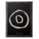 Hammered silver stylized solar system Sun symbol in a fine hand drawn silver double line frame. This notebook or journal or writing pad has a title of The Journey, which can be changed to personalize your own story.