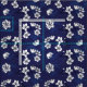 Hamptons navy blue fabric patterned with white hand drawn cherry blossom flowers