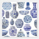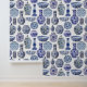Peel and stick Hamptons style ginger jars patterned wallpaper in shades of blue and white