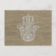HAMSA Hand of Fatima symbol amulet, tribal triangles, swirls circles dots eye centre, white trendy Hamsa is talismanic symbol of a hand with a eye on the palm, believed to protect from harm against the evil forces and bring goodness, abundance, fertility, luck and good health. Soft cream burlap texture effects background, white , cream colours. Personalize it with your name favourite word or phrase by clicking the customise button and add text, choose the text font and colour. Image print