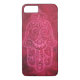 Vibrant magenta coloured from an original mixed media painting of a hamsa symbol. The hamsa is a symbol which is associated with a code of conduct called “Ahimsa,” which means ‘do no harm.’ Archaeological evidence indicates that a downward pointing hamsa (meaning 'five' in Arabic and representing the digits on the hand) was used as a protective amulet, often worn around the neck to protect the wearer from the 'evil eye'. It has long represented blessings, power and strength.