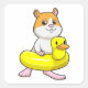 Hamster at Beach with Duck as Swim ring Square Sticker