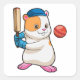 Hamster at Cricket with Cricket bat & Cap Square Sticker