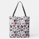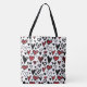 Hand Draw White,Black and Red Heart Shape Tote Bag