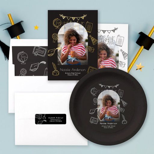 Hand Drawn Arch Photo Gold Graduate Announcement