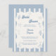 A hand drawn style Bridal Shower invitation with beach, coastal theme. A soft ivory and dusty blue striped colored background, with an ivory frame and dusty coastal blue elements. Personalize and add her name and the party details.