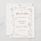 A hand drawn style wedding invitation with beach, coastal theme. A soft ivory colored background, soft taupe, warm sand colored elements. Personalize and add your names and the details.