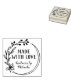 Made with love stamp with a simply drawn berry leaf and flower wreath. Add your name in a charming script.