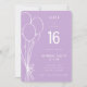 Make her birthday unforgettable with this hand-drawn lavender and white birthday invitation. Featuring playful balloon illustrations and bold typography in a chic, modern layout, this stylish invite is perfect for celebrating any milestone—whether they're turning 16, 18, 21, 30, 40, 50 or beyond!