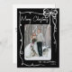 Send holiday cheer with this vertical Christmas card design. The front features a vertical photo in the center, framed by a swirling ribbon-style doodle border. A cute hand-drawn coquette bow sits in the top right corner, while “Merry Christmas” appears in a handwritten script at the top left. The bottom right includes space for your family’s last name or individual names, along with the year. The background is black, with the doodle art and fonts in white for a fun retro look.