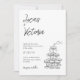Hand Drawn black&white photo Whimsical Wedding Invitation. This minimalist handwritten wedding invitation cam make your day even more special. Invitation features hand drawn illustration of Champagne Tower. If you want to modify the text, select «Details». For adjusting the text's position, font, or colour, click on «Edit using Design Tool».