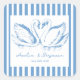 hand drawn Blue Couple Swan Whimsical Wedding Square Sticker