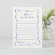 This downloadable bridal shower 'Advice for the bride' card features a beautiful blue hand-drawn squiggly frame, accompanied by a matching casual, handwritten font.