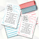 I wanted my baby shower "bring a book not a card" invitation inserts to read a bit differently to what Zazzle has as their standard poems. So I wrote my own and then changed the standard text in the text boxes in the edit mode online. I am very pleased with the result. The white ink font is easily legible (unlike the Hello Baby Minimalist Boho Invites that would not allow me to use a larger font for the party details). The font is nicely spaced. I like the 3.5x5" size of this card (some "instead of a card, please bring a book" inserts are business card size; business card size would not have worked for my longer poem). The finish is the same (semi matte, slight sheen, not metallic in any way) as the Hello Baby Minimalist invitations. The color of the card is the same as what's shown online. Minor point: I also liked that the designer of this card is super local -- Denver. I live about an hour outside of Denver. I'm wondering if that's why I received the insert cards well in advance of the invitations that were in the same order. Excellent. As expected.