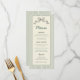 This hand-drawn bow wedding menu features slim green stripes, a sketched ribbon header, and a refined vintage layout with a nostalgic preppy feel. The subtle retro detailing and heritage-inspired typography create a quiet luxury aesthetic, perfectly coordinating with the vintage swan wedding suite for a cohesive editorial look.