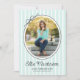 This modern graduation party invitation highlights an oval photo framed by a simple black border and finished with a charming hand-drawn bow. The design is set against a backdrop of soft light green vertical stripes, creating a fresh and classic look. The backside offers space for a second photo and custom text for your party invite details.