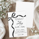 A hand-drawn bow sits in the top left corner, with flowing ribbon details extending across the top and down the left side of the card for a delicate, refined accent. The wedding text is placed in the bottom right, creating a balanced layout with plenty of open space and a calm, sophisticated feel.