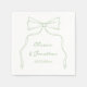 Elevate your reception with these Personalized Hand Drawn Bow White and Green Wedding Napkins. Perfect as wedding cocktail napkins or wedding napkins personalized, they add charm to a sage green wedding, green wedding theme, or white and green wedding. Ideal for an italian wedding, these details complete your hand drawn wedding look, blending elegance with a quirky wedding style for a truly unique celebration.