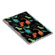 hand drawn bright cartoon dinosaur pattern black background colourful.