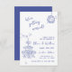 With its stylish blue & white sketch aesthetic and fun yet refined vibe, this design is ideal for modern couples, cocktail-style receptions, or party-themed weddings.