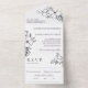 Hand Drawn Charcoal & White Flowers Wedding All In One Invitation