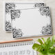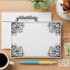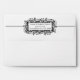 The four corners of this envelope are decorated with a bunch of fun, swirly, flourishes. All four corners are then encased in a thin black line to bring the design together. The back flap is decorated with a matching doodle art box that is a container for your return address. Great envelope for mailing those special occasion invitations, or cards.