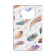 Hand Drawn Feathers: White Background Pattern Credit Card Bottle Opener