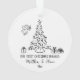 Our first Christmas engaged or together or married featuring a whimsical christmas illustration with tree, resent and little angel.