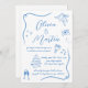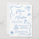 Hand drawn Fun Doodle White Blue Wedding Invitation