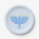 Hand-Drawn Hanukkah Menorah Paper Plates - Blue