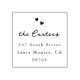A simple return address stamp with your name in a handwriting-style script font followed by your address in classic serif typography. At the top of the stamp there are two whimsical hand-drawn hearts. This is a wooden stamp, a self-inking version of this design is available in my store. Visit our store for more return address rubber stamps.
