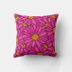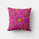 Hand Drawn Hot Pink & Orange Daisy Pattern Throw Pillow
