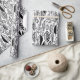 This striking gift wrap design features a pattern of hand drawn leaves in various doodled styles in black. The white background can be changed to any colour that suits your personal sewing needs and/or needs. Search ID495 to see other products with this design.