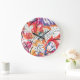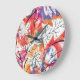 Hand Drawn Lemons, Blue Leaves Pattern. Large Clock