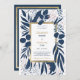 Hand drawn navy blue pink summer floral Wedding Invitation