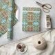 Hand Drawn Owl Mandala Artwork with tree branches, Fall leaves and blue and brown accents birthday gift wrap.